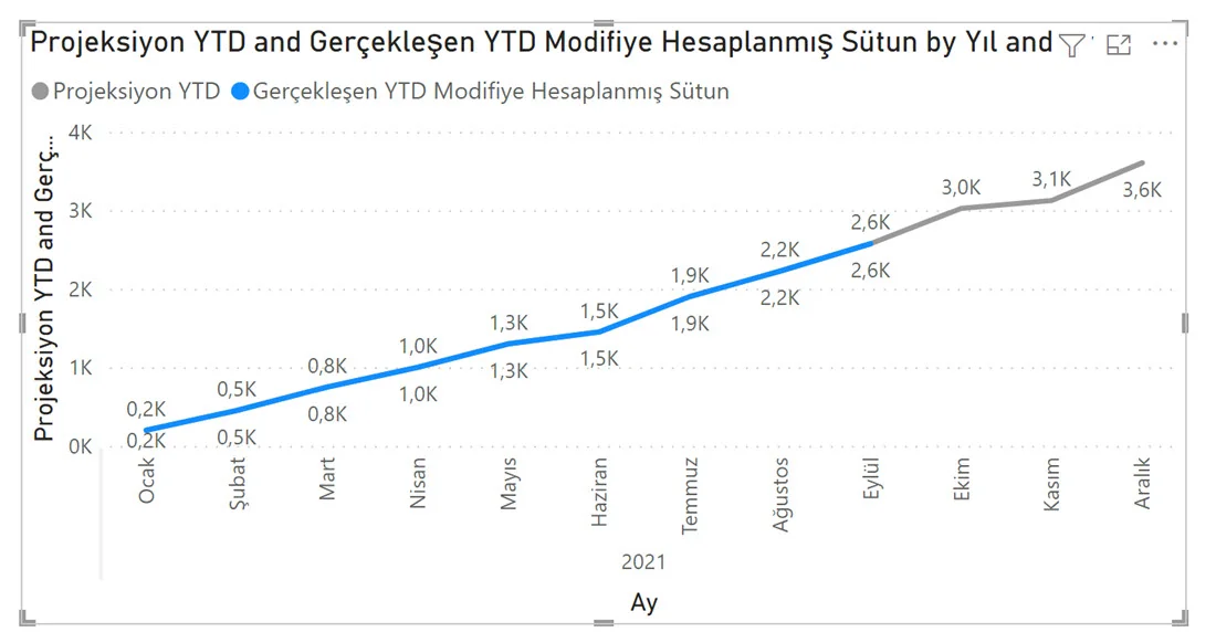 Son olarak modele hem Gerçekleşen için hem de Projeksiyon için YTD (Year-to-Date) metriklerini ekliyorum.
