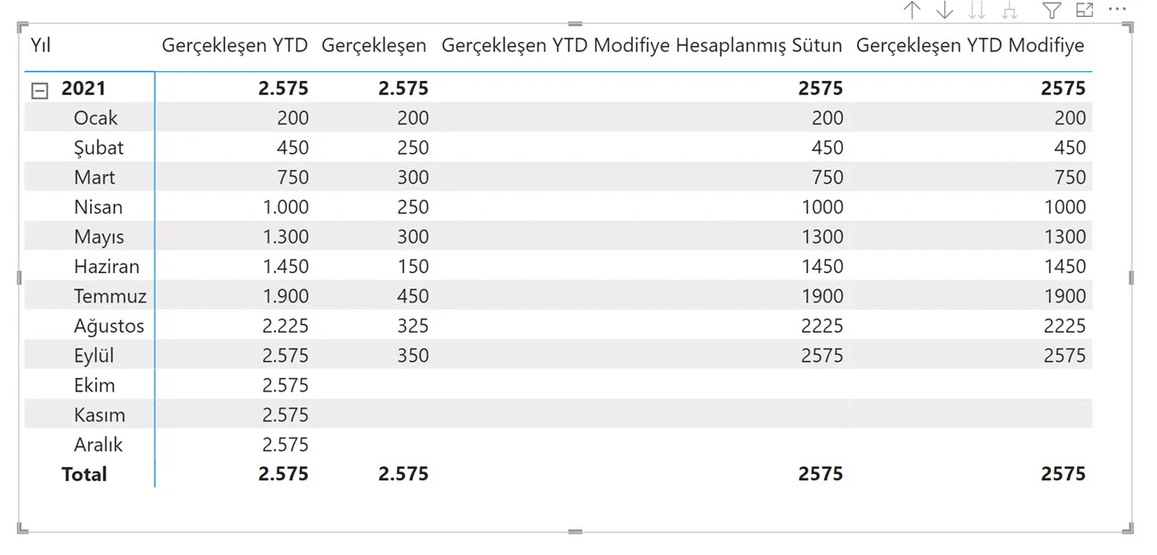 Gerçekleşen YTD Modifiye Hesaplanmış Sütun =